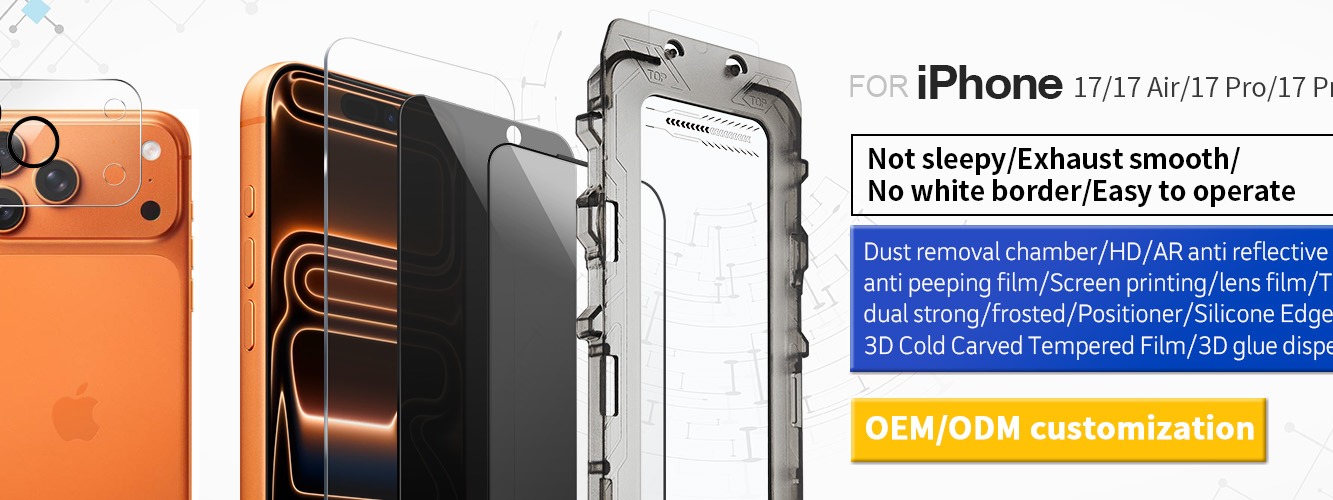 The company is mainly engaged in toughened glass film, 3D hot-bending steel film, 2.5D flat steel film. In the material can be customized according to the customer choice, mainly on the glass materials, such as corning, asahi, and other brand materials. Silk screen printing, electroplating, secondary reinforcement, etc. can also be customized according to customer requirements. The mobile phone model can be selected from the general market model or customized. The daily production volume of 3D hot-bending steel film is 18000pcs/ day, and 2.5d flat steel film is 150,000pcs/day, meeting the OEM demand.
